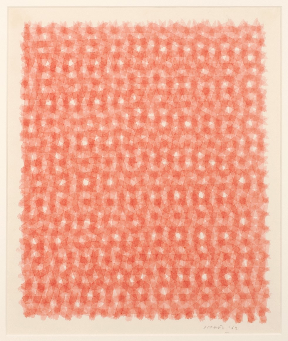 "ZERO in Vibration – Vibration in ZERO," organized on the 30th anniversary of Moeller Fine Art in New York and the 55th anniversary of "Motion in Vision – Vision in Motion," finds fresh resonance in the literal, optical and potential vibrations of ZERO. Highlights include Veil of Light, 1964, by Heinz Mack, a pulsating plane of reflective hexcells; 2 trames de chevrons superposées, 1961, by François Morellet; and Rosso di sotto, 1961, by Piero Dorazio, a vibrant, intersecting grid painted on canvas.