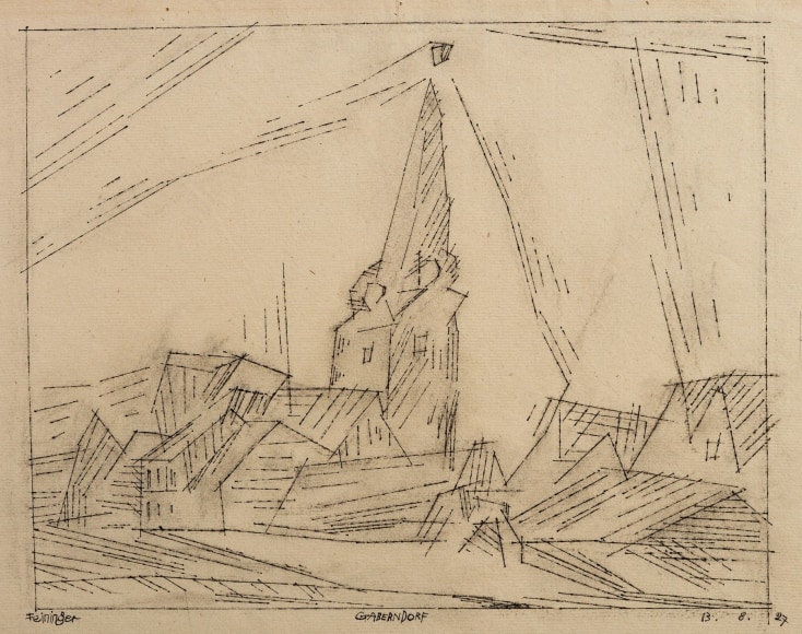 On May 18, 1919, Lyonel Feininger (1871-1956) and Walter Gropius (1883-1969) boarded the train from Berlin to Weimar. Gropius, the founder of the Bauhaus, had appointed Feininger as the first Master in the new school, beginning what Feininger later described as the “finest adventure in my artistic career.” Upon his arrival in Weimar, Feininger was immediately impressed by the school’s building, designed by Henry Clemens van de Velde (1863-1957), and, most of all, by his new studio. The day after his arrival he wrote to his wife, Julia: