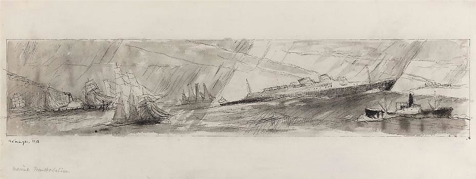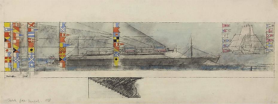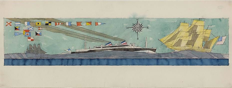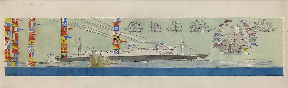(Double-funneled Liner, Sailing-ships and Nautical Flags), 1938