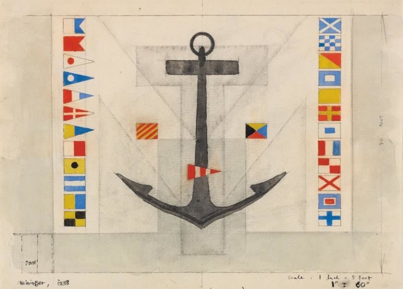 Design for Rear Wall of Marine Transportation Building (M T), World’s Fair New York 1939, 1938