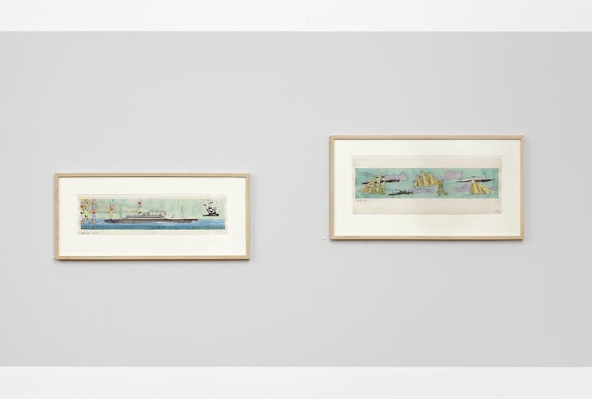 The 21 drawings and watercolors Feininger designed for the Marine Transportation Building can be regarded as the peak of the artist’s love for all things maritime. This fascination started in the 1880s when the steam vessels and sailing boats on the Hudson River captivated his adolescent imagination and continued through the following decades during his countless visits to the Baltic Sea. The eight drawings and watercolors executed in 1939 for the courtyard of the Masterpieces of Art Building at the New York World’s Fair explore motifs found in his German œuvre, including Pomeranian seasides and Thuringian villages. His friend, the art historian Alois J. Schardt, wrote about the works of this period: “Feininger’s form has reached its greatest concentration, his color and technique are reduced to the utmost simplicity. His energies are devoted to the creation of space in which the universal forces, absolute and free, manifest the reality of their ordered being.“