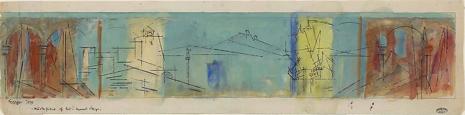 Signed, dated and titled lower left Feininger 1939 „Masterpieces of Art” – Mural Design,