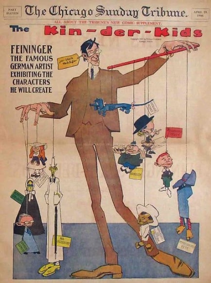 As part of its inaugural exhibition, Moeller Fine Art Berlin presented "Your Uncle Feininger: Comics, Fairy Tales, and Toys", exploring little-known aspects in the work of Lyonel Feininger (1871-1956). For the first time, the preparatory figure and nature studies for Feininger's comic strips, The Kin-der-Kids and Wee Willie Winkie's World, were shown alongside original broadsheets from The Chicago Sunday Tribune, where they were published in 1906-1907.