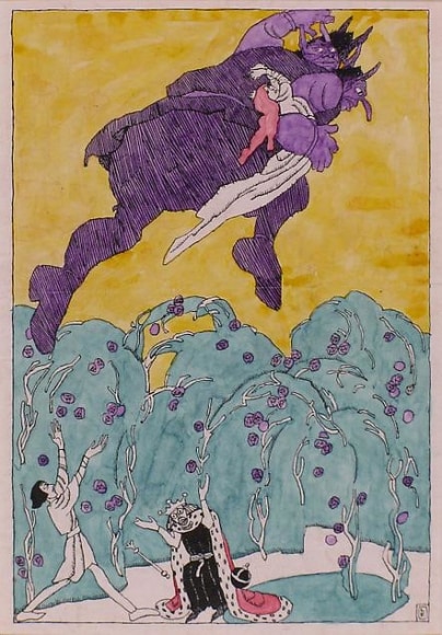 In 1913, Lyonel Feininger also designed a series of toy trains for the Munich manufacturer Otto Löwenstein. Due to the outbreak of the First World War, however, only the prototypes were realized. The preparatory drawings for these were only recently discovered, were shown at Moeller Fine Art Berlin for the first time. In addition, five drawings of 1908 for Hans Bondy's edition of Norwegische Volksmärchen (Norwegian Folktales) will be shown.