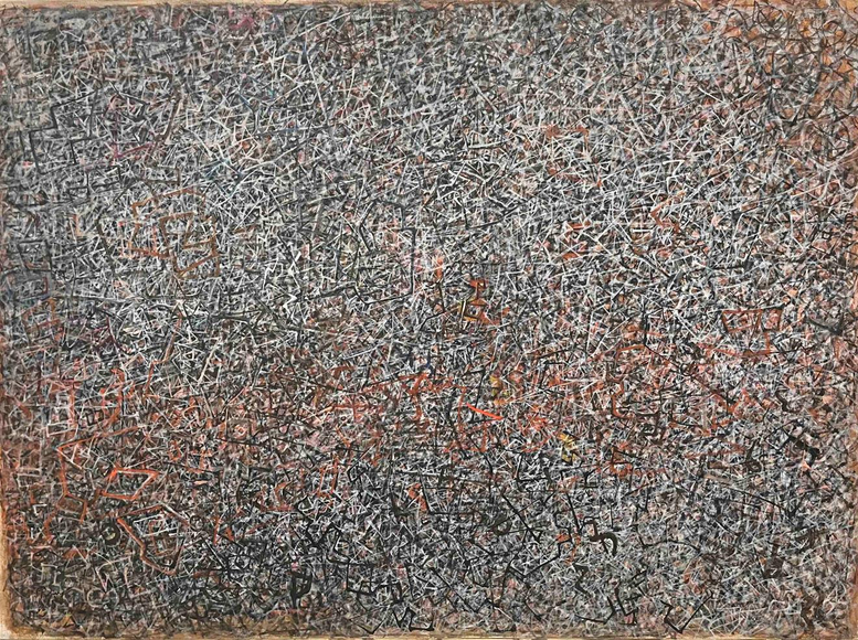 In 1918 Tobey became a member of the Baha’i community, a religion that teaches the essential value of all religions, whose emphasis on universal consciousness suffused much of his work: “I believe that painting should come through the avenues of meditation rather than the canals of action. Only then can one have a conversation with a painting." His travels to China and Japan in the 1930s, where he studied Zen painting, haiku poetry, and calligraphy, also proved invaluable in his artistic development: “It was there that I got what I call the calligraphic impulse to carry my work on into some new dimensions . . . With this method I found that I could paint the frenetic rhythms of the modern city, the interweaving lights and the streams of people who are entangled in the mesh of this net.”