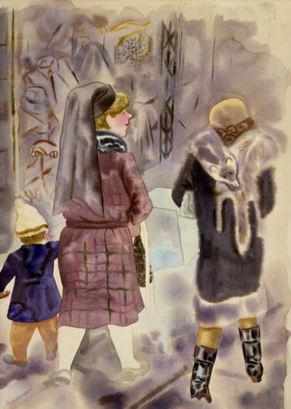 Theater life in 1920s Berlin was vital and innovative, as artists began to use the stage as well as the canvas as a political platform. Between the years 1919 and 1930, Grosz was involved in nearly a dozen theater productions. Fourteen works on display are from his series of drawings and watercolors executed for The Adventures of the Good Soldier Schwejk. The play satirizes the pretensions of the bourgeoisie, the bureaucracy of the military, and the hypocrisies of the clergy, topics that Grosz also dealt with extensively in his own work. Adapted for the stage by Bertolt Brecht, among others, from the novel by Jaroslav Haek, this enormously successful play was directed by Erwin Piscator, renowned for his innovative political theater.