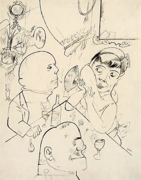 The exhibition focuses on Grosz's years in Berlin during the 1920s. Berlin was in that decade a hotbed of political activity and social intrigue. While dominated by corruption and excess, it was nevertheless an environment that fueled creativity, and many artists and literary figures were highly productive during this time. Some of the most candid artistic renderings of the German capital are seen in the art of George Grosz. From caricature-like figure drawings and nudes to bustling street scenes, the works in the show display some of the artist's most politically pointed commentaries. Included is Grosz's drawing for the coverplate of Die Räuber (The Robbers), a collection of lithographs after the play by Friedrich Schiller and one of Grosz's most infamous political works.