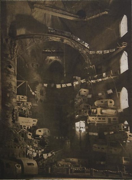 Lothar Osterburg’s recent work is based on Giovanni Battista Piranesi’s Carceri d'invenzione [Imaginary Prisons], a series of 16 first and second state etchings depicting enormous subterranean vaults with stairs and towering machines. Osterburg begins by constructing a scale model of Piranesi’s prints from memory, and then allowing his work to develop intuitively. The result, therefore, is a combination of his own recollection and that of history. He photographs the model from the point of view of a miniature inhabitant, revealing the monumental quality of the space. A photogravure plate is then created and designated the ‘first state’, that is, the first stage of a journey through time and space. Osterburg reworks the image for a ‘second state’, using the same tools Piranesi used over 200 years ago. Each step of this journey is documented in stop-motion animation film, accompanied by the music of composer and performer Elizabeth Brown (the artist’s wife). A second video, “Piranesi 2012”, takes the process one step further by re-working the original model, which in turn leads to further prints, bringing the eighteenth century construction into the twenty-first century. Both videos will be shown in the exhibition.