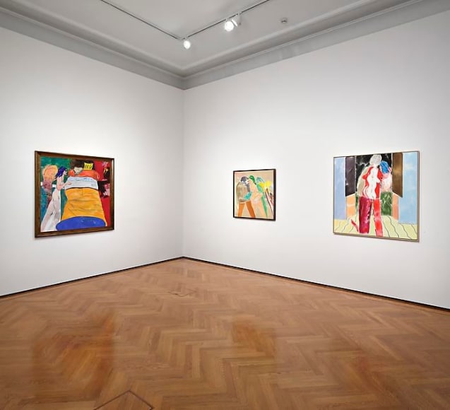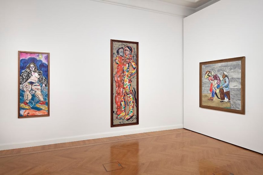 Kitaj was also a voracious reader and sought to communicate both through image and text. He accompanied many of his works with explanatory “prefaces” and identified with the “painter-scribbler” Vincent van Gogh, to whom he paid homage with After Vincent (2nd Transaction), 2006. For the “preface” of the painting My First Time (Havana, 1949), 1990, also included in the exhibition, Kitaj wrote: