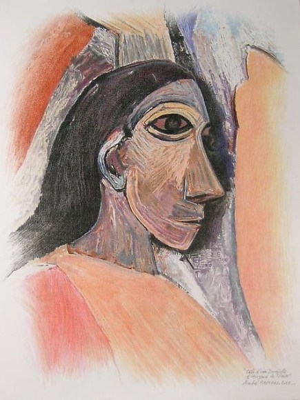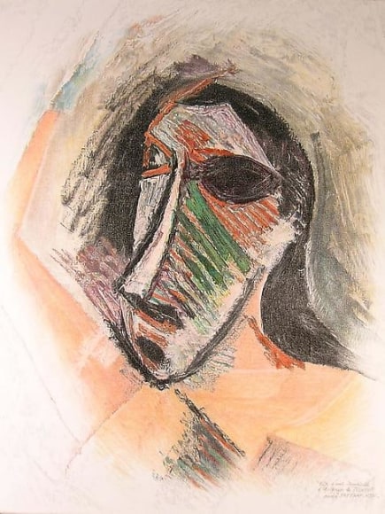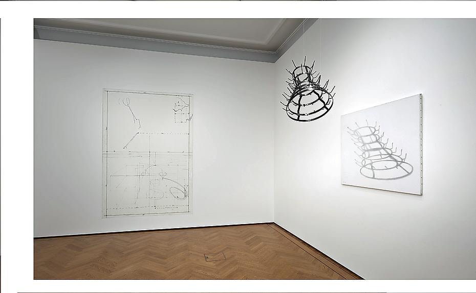 The title of the exhibition “Shadow of the Bottle Rack” takes its name from Raffray’s installation created in 1993, in which he suspends Duchamp’s well-known bottle rack at an angle from the ceiling in front of a white canvas on which he himself has drawn a shadow. A related work, “First Sketch of The Large Glass by Marcel Duchamp”, 1992, is a drawing after a photograph of a drawing of Duchamp’s “Large Glass” which the artist had executed directly on the wall of his New York studio. Duchamp’s study of the Large Glass was destroyed and with this pencil reproduction Raffray resuscitated the important sketch that led to his masterpiece “The Bride Stripped Bare by Her Bachelors, Even”, or “The Large Glass”, (1915-23). Raffray’s version is composed of pencil on primed, painted plywood and will be incorporated onto the wall of the gallery. With the same technique, Raffray painted two individual portraits from Picasso’s revolutionary “Les Demoiselles d’Avignon”, while staying true to the proportions of the original. The complete version of Raffray’s own “Les Demoiselles d’Avignon” is located at the Moderna Museet in Stockholm.