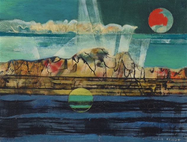Signed lower right: max ernst | Inscribed, titled and dated on verso: max ernst CALME 58